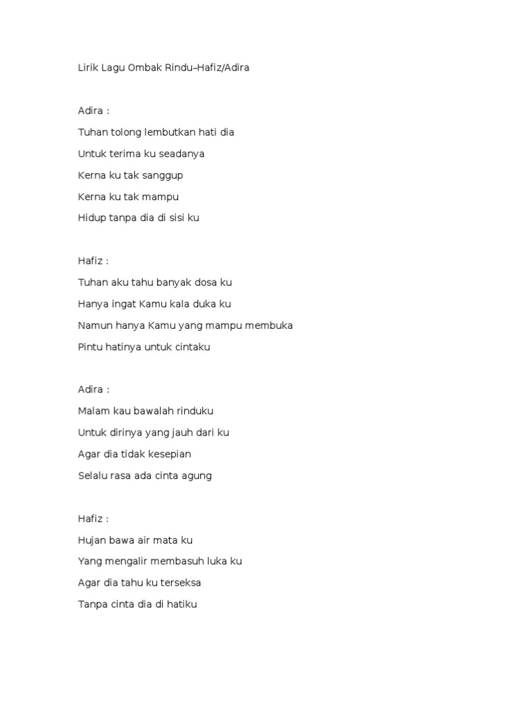 Lirik Lagu Ombak Rindu Hafiz Adira Adira Hafizadira Html Ixzz1ic89wdsm