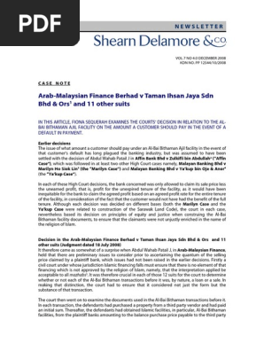 Arab Malaysian Finance Berhad V Taman Ihsan Jaya Sdn Bhd 2008 Financial Transaction Islamic Banking And Finance