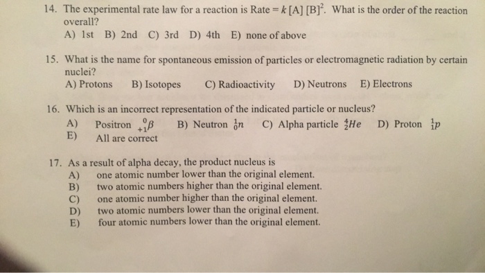 Solved 14 The Experimental Rate Law For A Reaction Is Ra Chegg Com