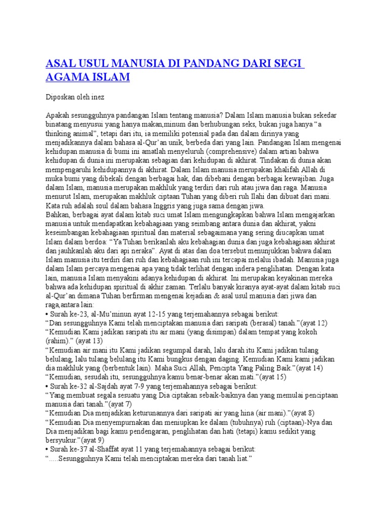 Asal Usul Manusia Di Pandang Dari Segi Agama Islam