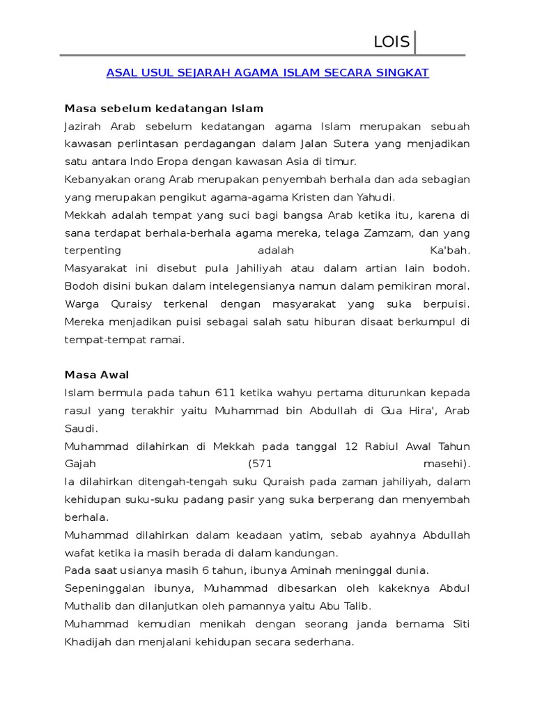 Doc Asal Usul Sejarah Agama Islam Secara Singkat Isral Firman Academia Edu
