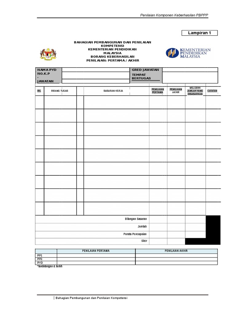 Borang Markah Keberhasilan Tahun Bahagian Pembangunan Dan Penilaian Kompetensi Kementerian Pendidikan Malaysia 2018