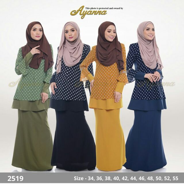 Baju Kurung Moden Polkadot Agnes 2519 Xs 7xl Baju Raya 2019 Baju Kurung Raya Ayanna Shopee Malaysia