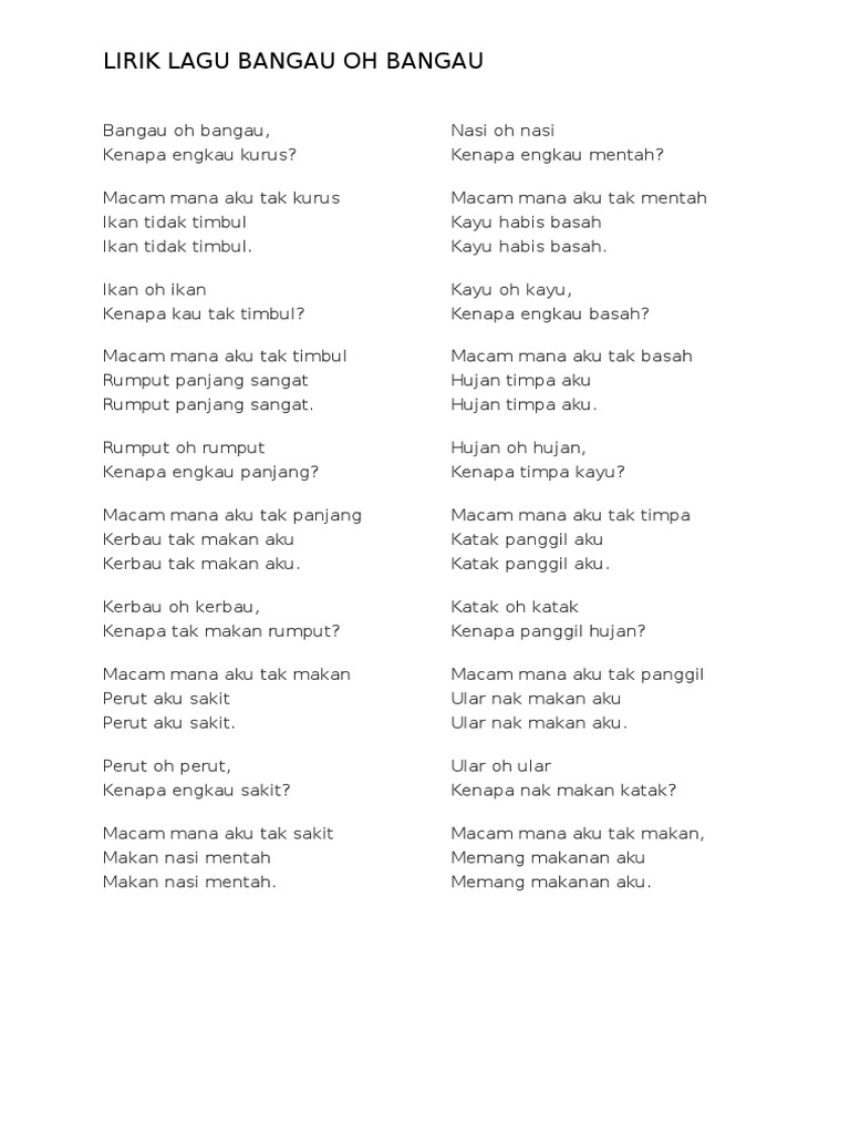 Lagu Anak Asal Malaysia Ini Lirik Lagu Bangau Oh Bangau Mengapa Engkau Kurus Semua Halaman Sonora Id