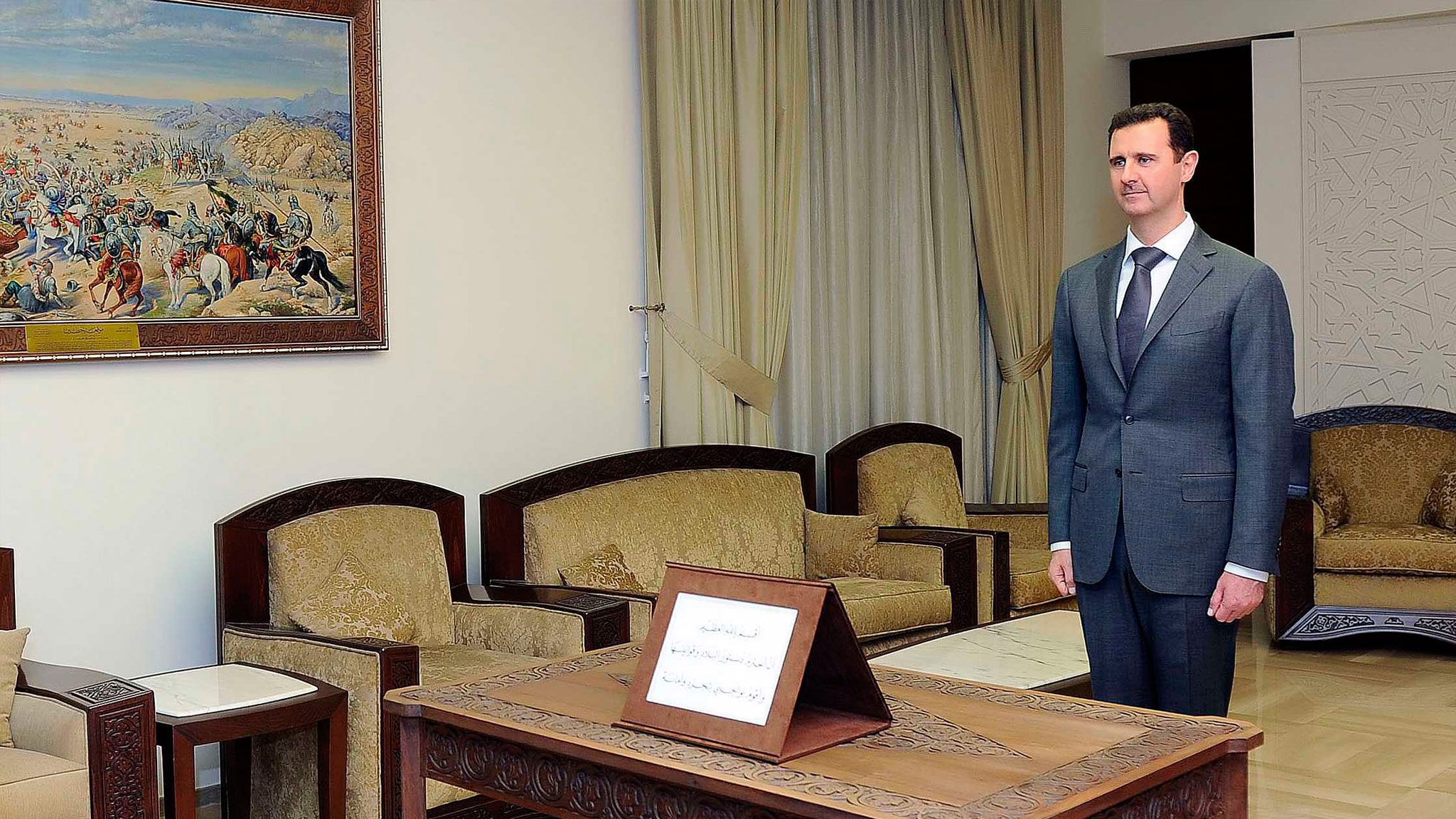 Syrian President Bashar Al Assad During A Meeting With Western Stock Photo Alamy