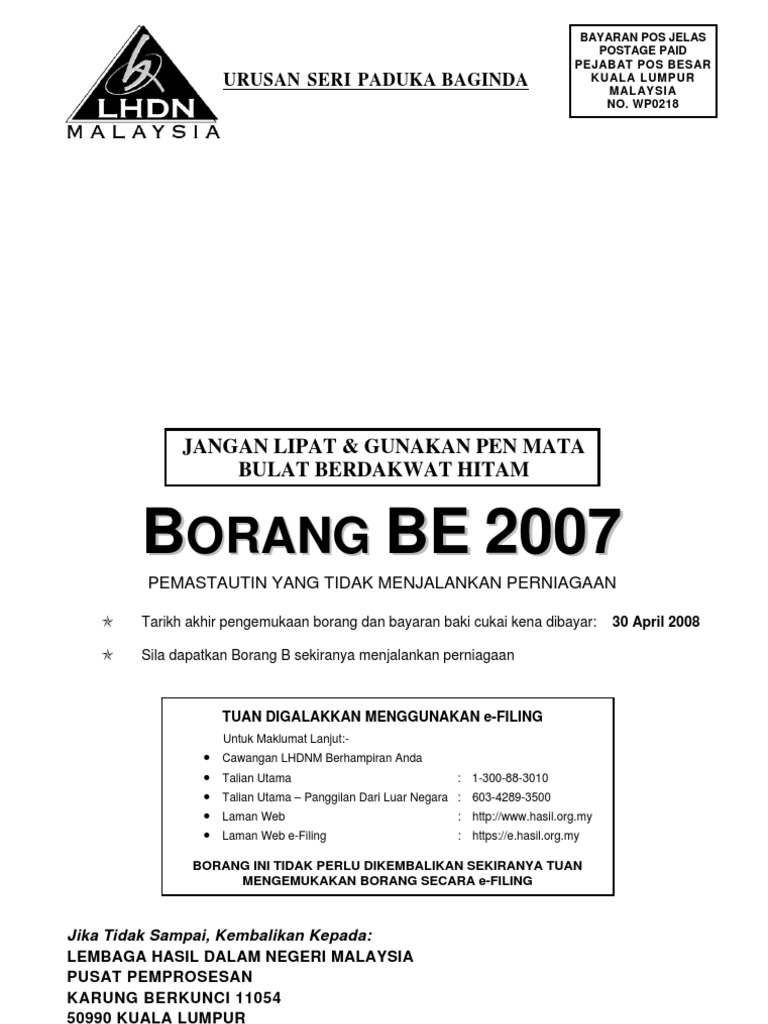 Http Www Hasil Gov My Pdf Pdfborang Borang Be2008 1 Pdf