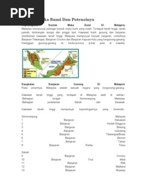 Bentuk Muka Bumi Nota Form 1 Bab6 Tanah Tinggi Docx Document