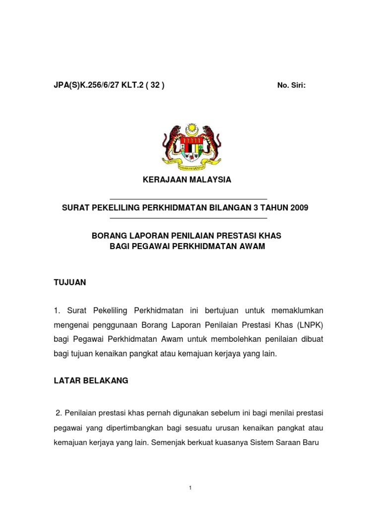 Kerajaan Malaysia Laporan Penilaian Borang J P A Lnpk 2 2009 Kerajaan Malaysia Laporan Penilaian Prestasi Khas Bagi Pegawai Kumpulan Pengurusan Dan Profesional Kumpulan Sokongan