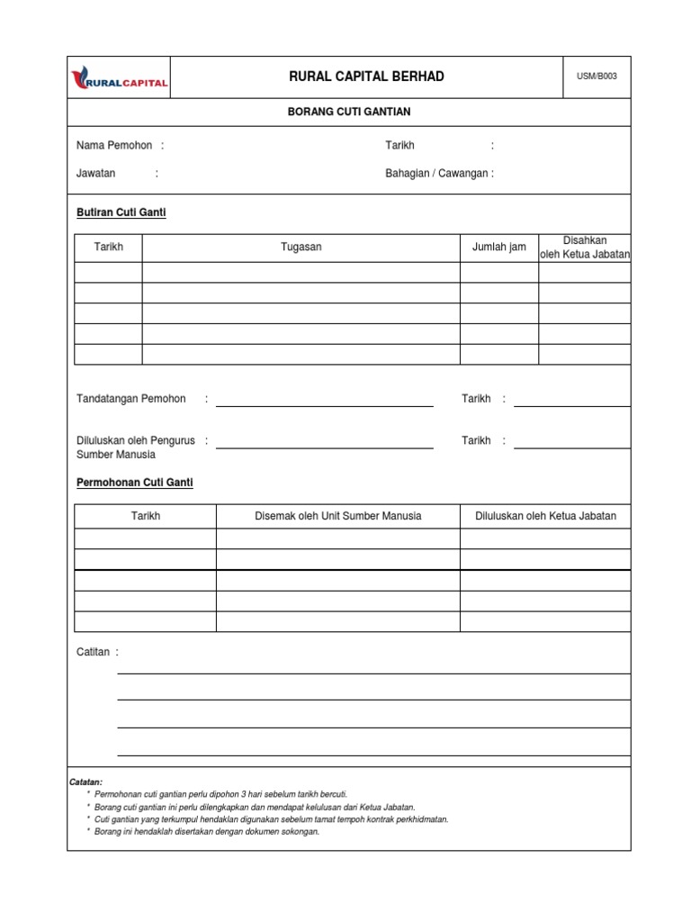 Doc Borang Cuti Gantian Doc Uhisyam Sriib Academia Edu