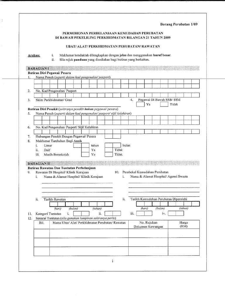 Jabatan Perkhidmatan Awam Arahan Bahagian I Borang Perubatan 3 09 Permohonan Perbelanjaan Kemudahan