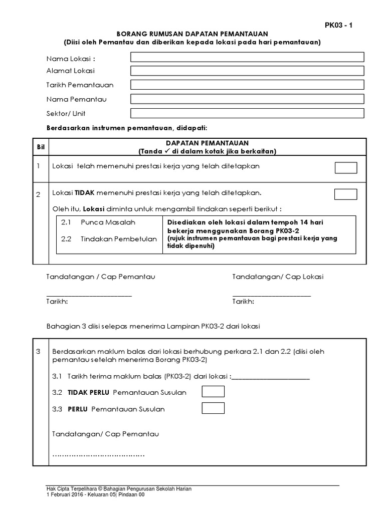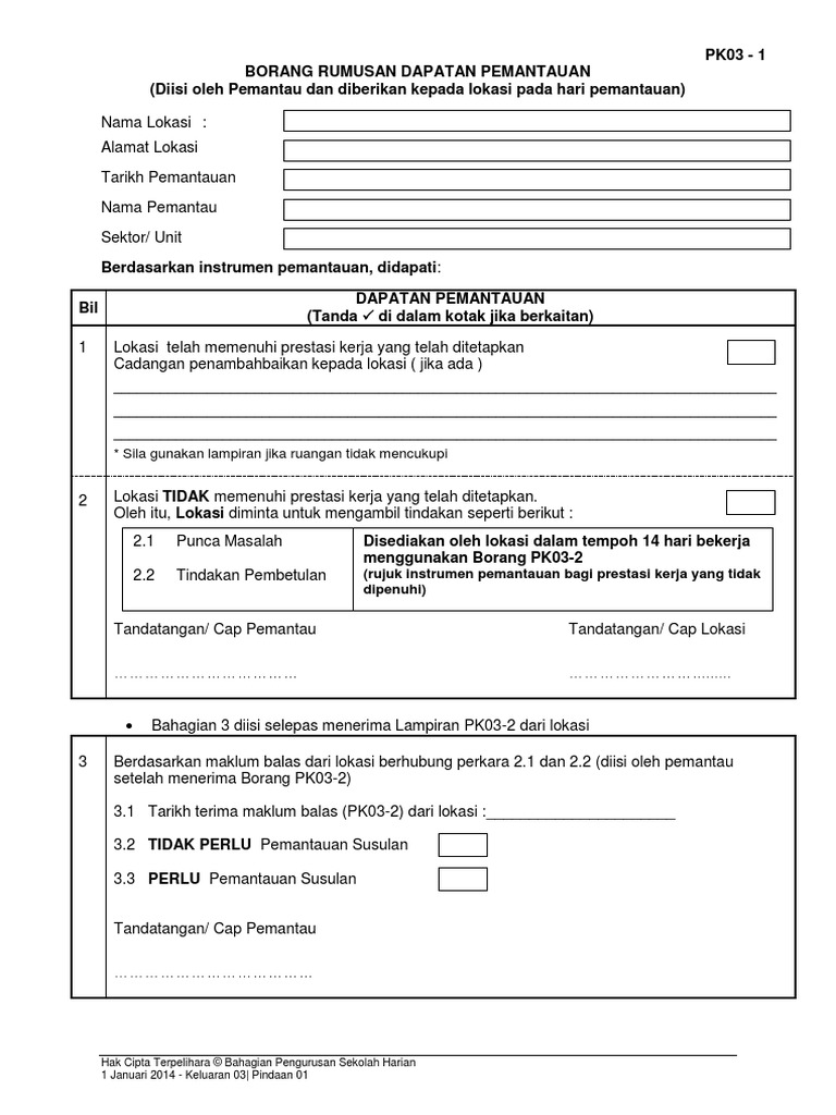 Pk03 1 Borang Rumusan Dapatan Pemantauan 1
