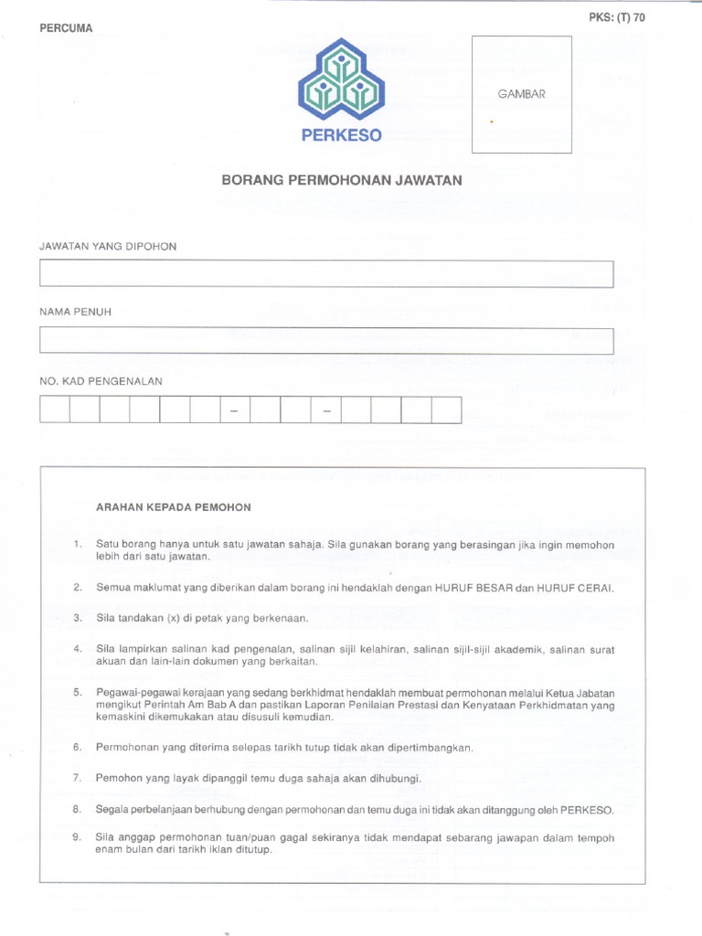 Perkeso Borang Permohonan Jawatan