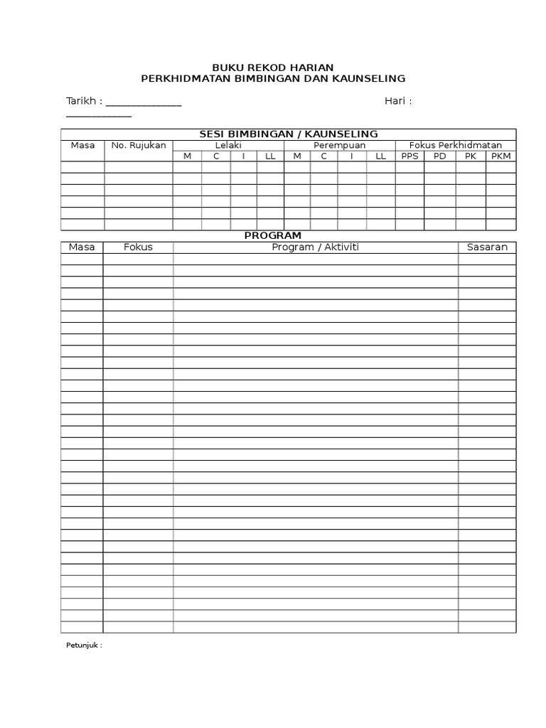 Buku Rekod Perkhidmatan Bimbingan Kaunseling Docx