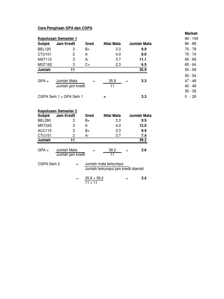 Cara Kira Gpa Cgpa Xls Document